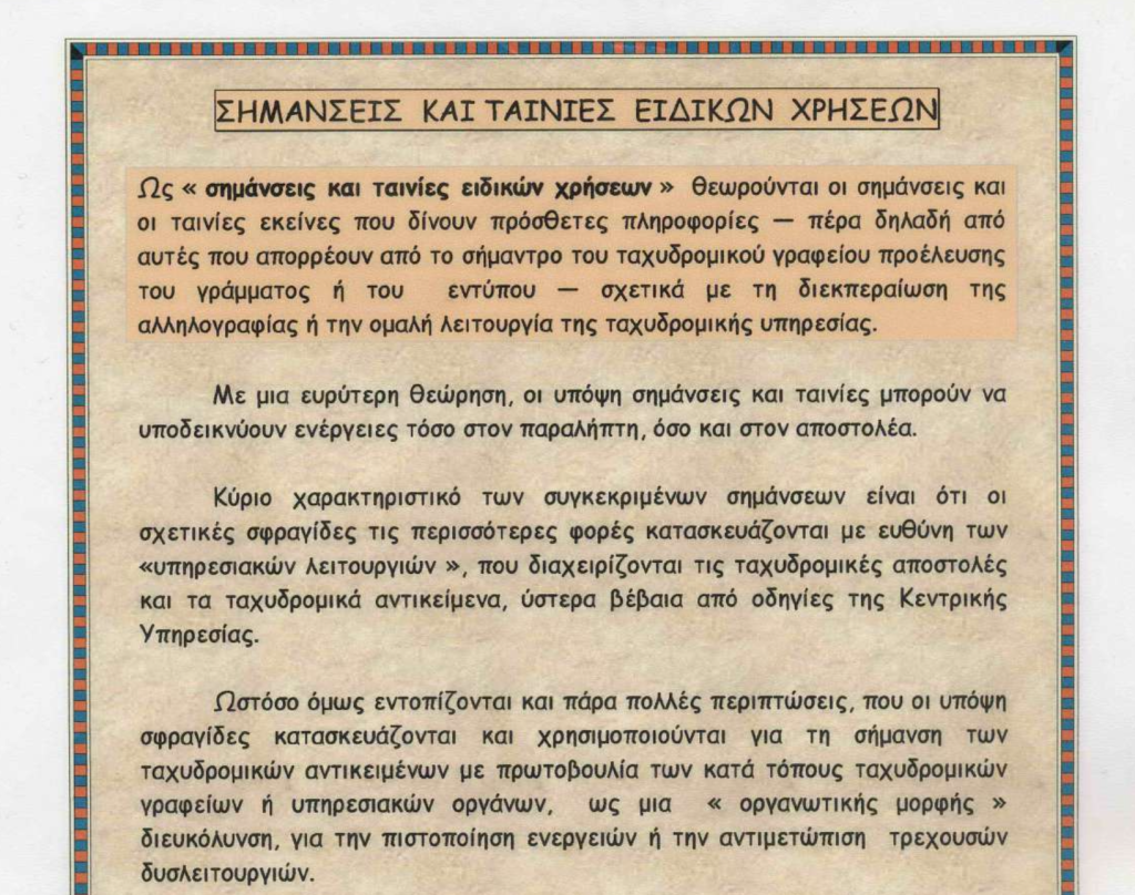 This exhibit - enriched with supplementary philatelic material and with references to relevant circular instructions of the Hellenic Post Office - constitutes the core of the book "Auxiliary markings of postal items", which you can find at: https://www.efo.gr/philatelic-books/ |